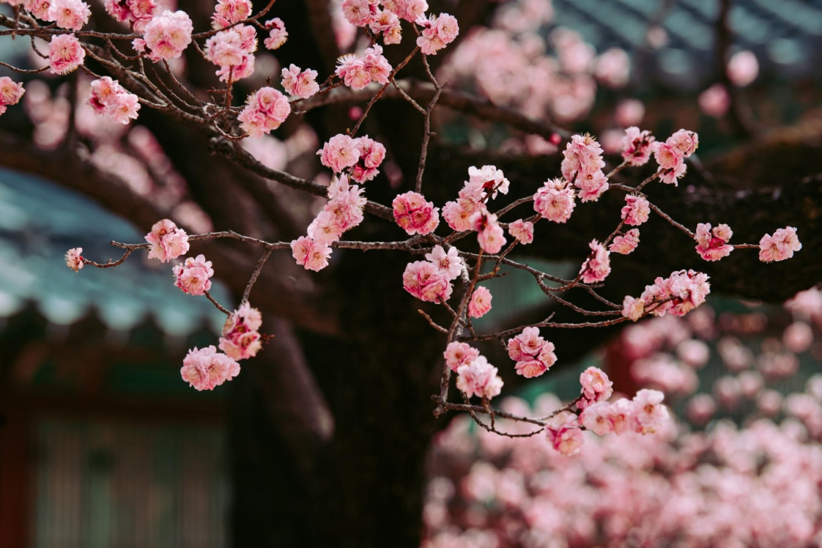- Всі квіти сакури розквітають майже одночасно, створюючи справжню "рожеву хмару" на деревах.