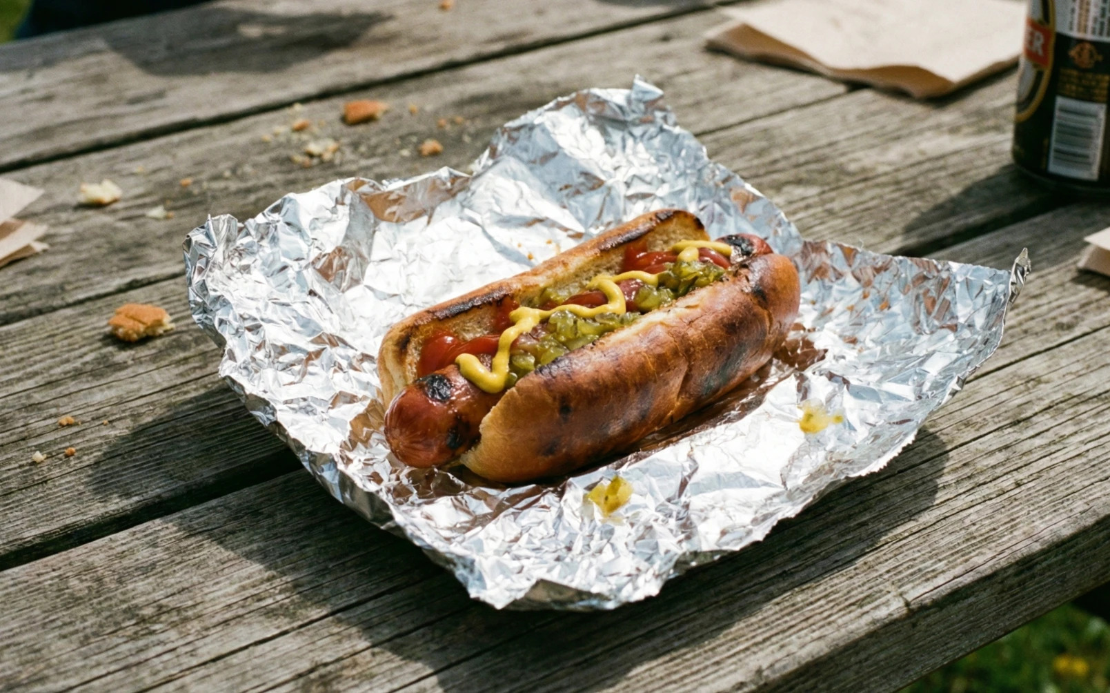 - Долго сохраняет тепло. Хот-дог в фольге остаётся горячим значительно дольше – зимой, в мороз минус десять, это решающий аргумент.