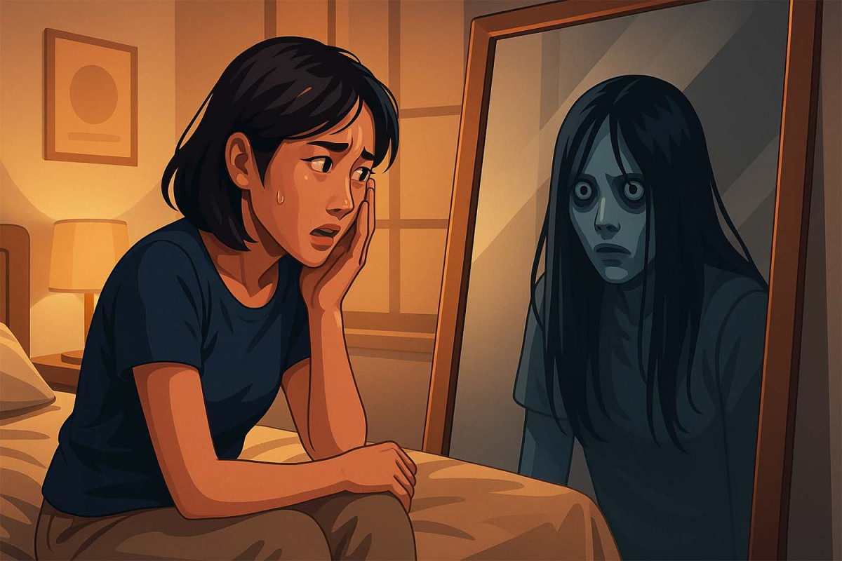 В японському фольклорі є безліч історій про дзеркальні духи – істот, які живуть по той бік відображення. Найвідоміша легенда розповідає про "Kagami no Oni" – демона, який може замінити ваше відображення своїм і проникнути у світ живих. Вважається, що якщо довго дивитися у дзеркало в темряві, особливо при свічці, можна побачити, як відображення "живе власним життям".