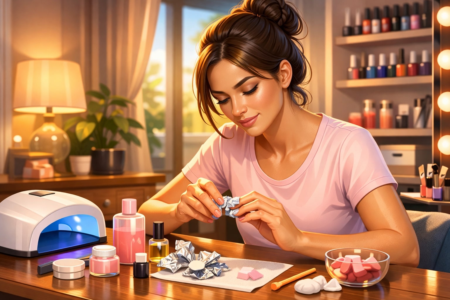 Перед початком процедури варто підготувати всі матеріали, щоб процес був чітким і контрольованим. Вам знадобиться рідина для зняття гель-лаку (бажано з доглядовими компонентами), ватні диски, фольга або силіконові ковпачки, апельсинова паличка, пилочка середньої абразивності та масло для кутикули.