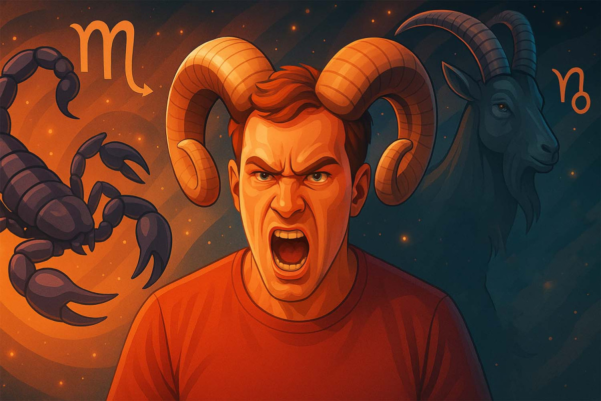 Хоча Овен вважається найагресивнішим, Скорпіон теж має сильну емоційну енергію. Його агресія – прихована, стратегічна і часто психологічна. Скорпіон не кричить, але може "вжалити" точно і боляче. Козеріг же проявляє агресію у вигляді холодного контролю й жорсткості – він не вибухає, але діє наполегливо і твердо.