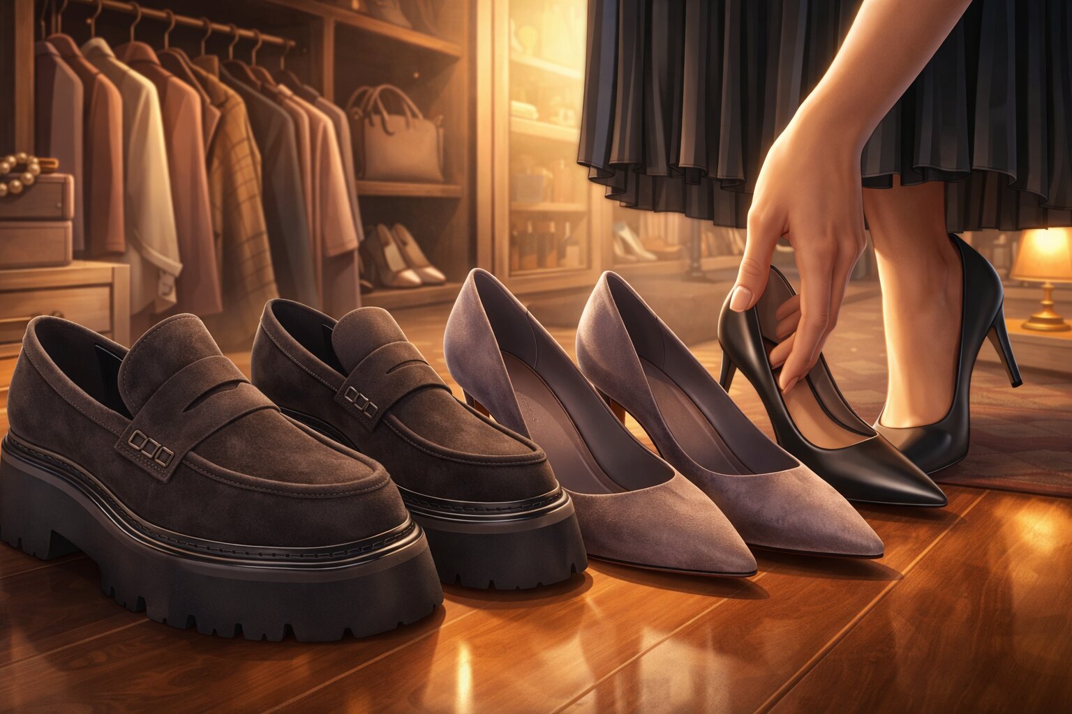 Навіть універсальний колір не компенсує дискомфорту. Туфлі повинні мати правильну колодку, м’яку устілку та стабільні підбори. Посадка має бути зручною одразу, без відчуття тиску чи ковзання п’яти.